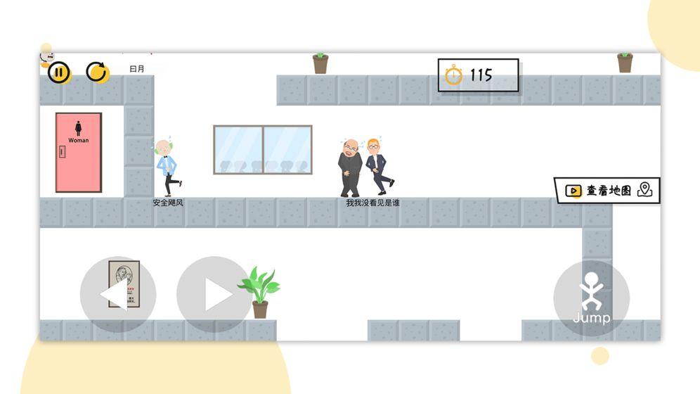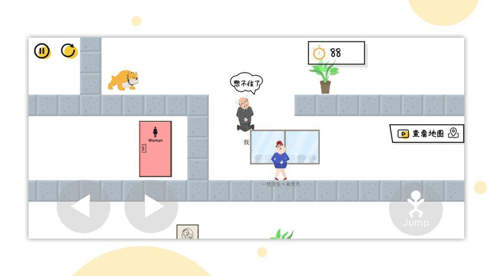 这是一款相当魔性的小游戏,在这里玩家将要操控一个中年大叔,他因为闹肚子现在必须要到达厕所才行;