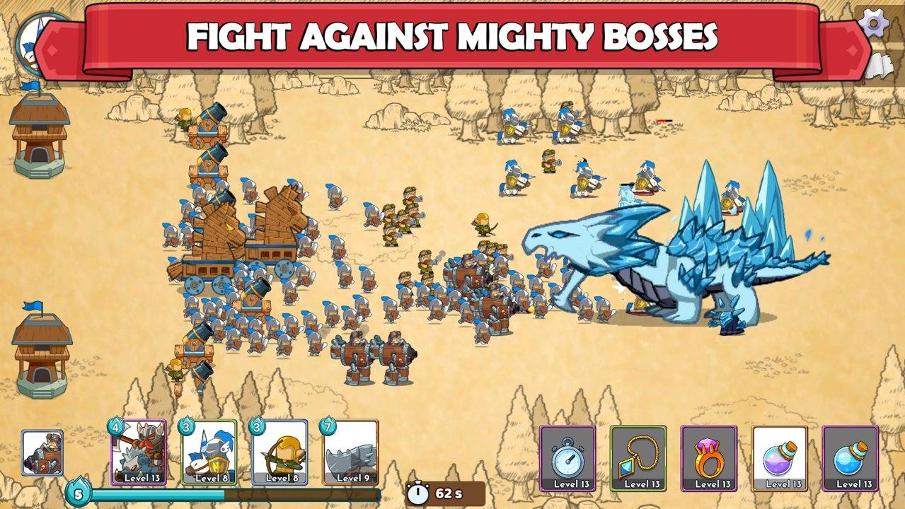 你是你军团的国王,你负责带领自己的军队征服敌人,寻求荣耀,终极力量,并建立自己的王国,接受每一个关卡的挑战。