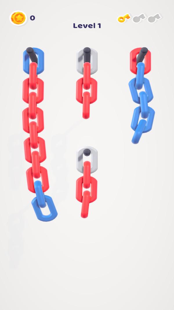 锁链排序官方版的玩法非常的简单有趣,游戏中玩家将面临着很多不同颜色的锁链,你需要将不同颜色的锁链解开将他们相同的颜色放在一起才算是成功,游戏的关卡也是非常多样的,有一难度需要玩家有一点空间想象力去解决问题。