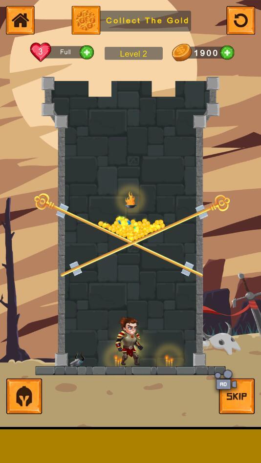 您必须做的是按正确的顺序拉动别针,以便英雄救出公主,并将隐藏的宝藏从龙,狼的手中安全带走。