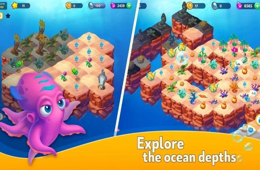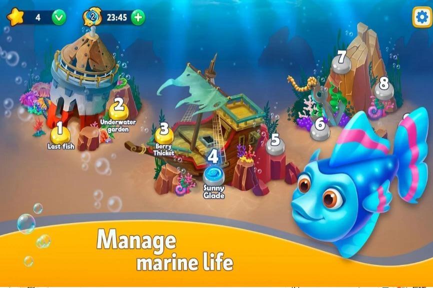 要完成关卡,您必须清除海底并合并主要元素-海图腾。事前思考,改变海底外观,进化鱼类;