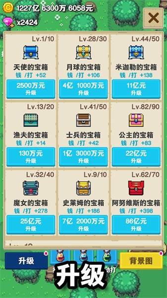 培育宝箱破解版修改了没有足够的货币也可以购买,这是一款非常好玩的像素类养成手游,游戏的设定非常奇葩,并且采用了轻松的点击玩法,在这款游戏中你需要对不同的宝箱进行培养,从中获得各种道具和金币。