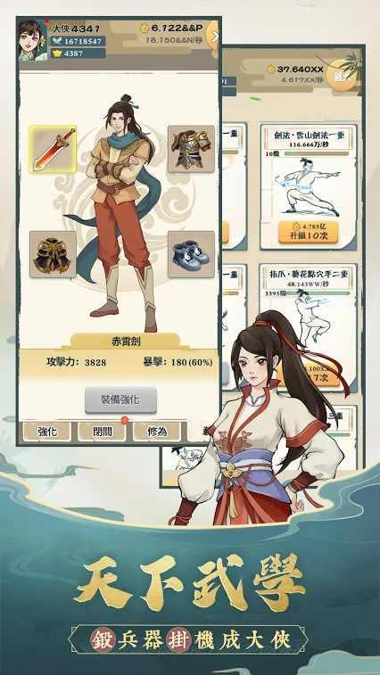 我也是大侠国际版最新版本还是那个非常经典的一场模拟大侠的传奇手游,全新的版本中设置的最强修仙模式带来的全新挑战,玩家们可以在众多的新颖武林绝学中去完成更多的冒险,修炼绝学,武功,心法,剑法等古风还原的最强魅力,千万不容错过的一款经典佳作。