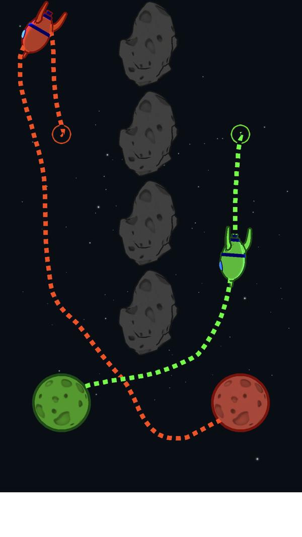 非常考验玩家的操作能力,需要躲开宇宙中的其他障碍物才能抵达陨石。