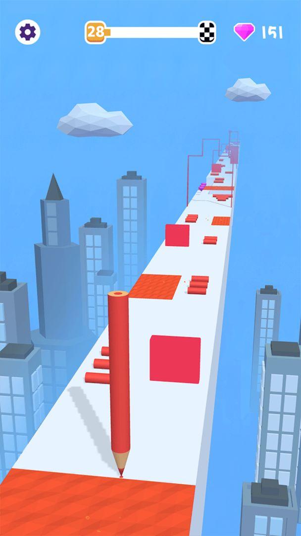 铅笔冲冲冲是一款非常好玩的休闲闯关小游戏,游戏的画面非常简约,以一支铅笔为主角,在这款游戏中你将控制一支铅笔进行跑酷,收集散落到道路上铅笔块,使你的铅笔增长,如果只剩个铅笔头你就输了,快来试试吧!