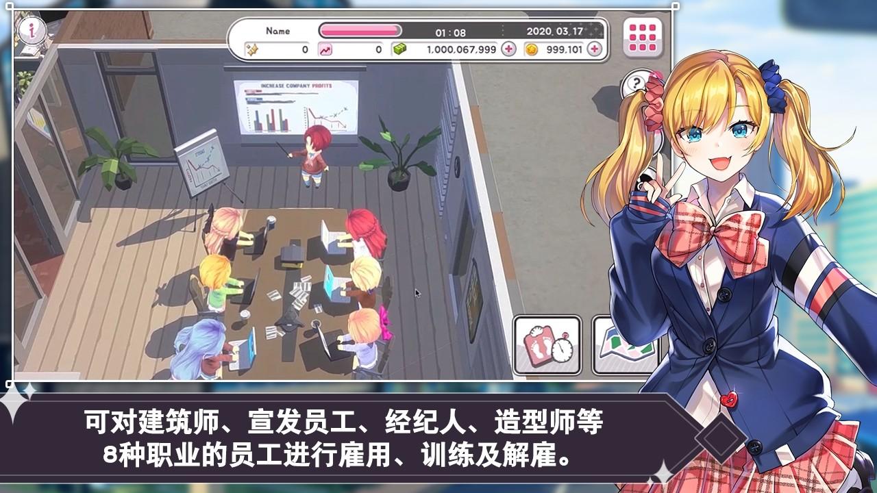 偶像明星制作人是一款非常真实的偶像养成游戏,这款游戏采用动漫的画风,每个角色的立绘都不同,玩家将成为一名偶像公司的制作人,您需要招募练习生,训练培养偶像,让他们成为巨星,并为偶像选择合适的服饰进行装扮,还有很多玩法可以体验哦;