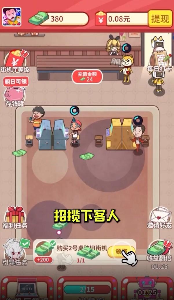 1.快乐街机厅是红包版的模拟商务游戏,带来丰富的互动乐趣。