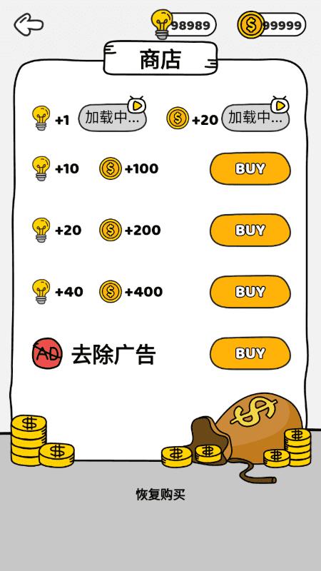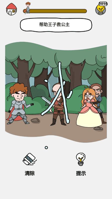 3、以检验玩家是否聪明,游戏里每一个关卡都需要玩家动用脑筋,玩家利用画笔画出图片所需的东西。