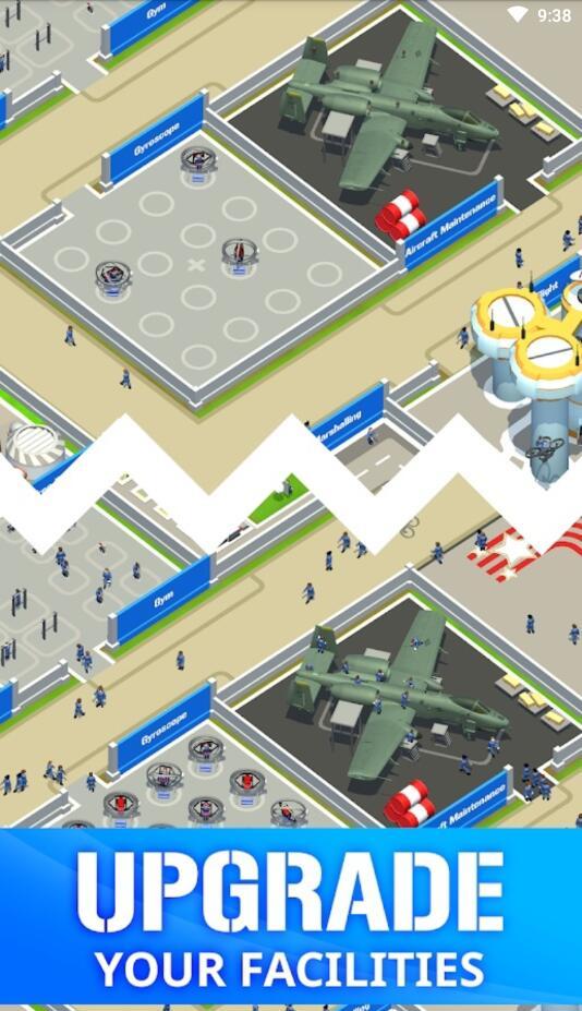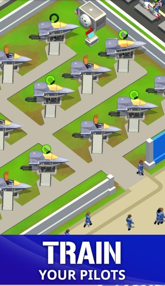 经营你的空军基地,帮助新兵们进行多种空军训练,快速提升他们的专业水平。