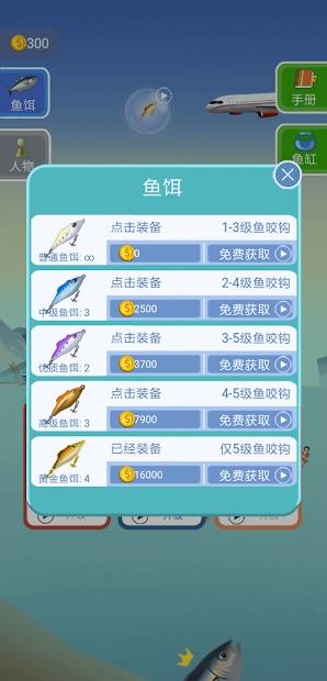 各种各样的鱼竿,各种各样的小船,带走进更加有趣的钓鱼游戏体验;