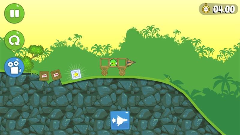 这是一款益智游戏,和愤怒的小鸟不一样,这次的主角可是捣蛋猪,猪王不知道看上了什么东西,小猪就踏上了寻找宝物的征途。游戏很物理,特别物理,就连猪都耐打了。不知道是不是因为主角光环。你为了让捣蛋猪可以顺利的到达终点,你需要设计好一辆小车,游戏自由空间很大,零件都是散乱的,你可以随意组建,可能只放一头猪就可以过关了。游戏有很多工具,有木头做的,也有铁做的,不同材料的坚固程度也是不一样的。还有汽水加速,还有电风扇加速,真是无法吐槽,到后面还有TNT,气球,可以说道具是非常多了,就是可怜了这猪。