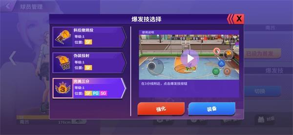 有别于传统街篮手游,《潮人篮球2》在传统爆发技能系统中做出了专属创新,让随意更换同位置球员爆发技能成为了可能。以前锋斯科特为例,依据自己的喜好更换“叉冒”和“击地空接爆扣”等爆发技能。