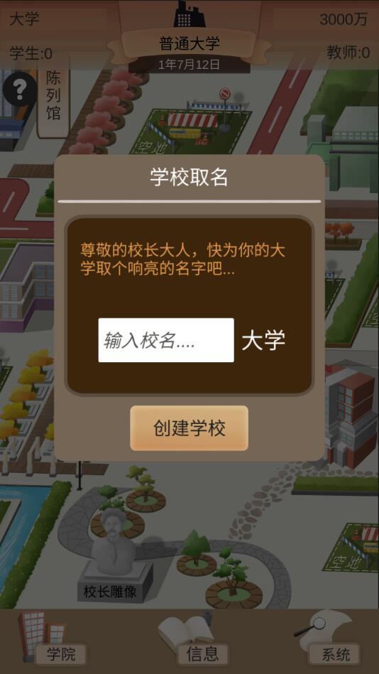 以校之名2游戏是一款非常好玩的经营模拟游戏,玩家将成为一座大学的校长,您需要一点一点的让自己的大学成立起来,招到许多的学生,提高学生的成绩,让学校成为您想象中的样子,听起来很简单,但是玩起来非常有考验;
