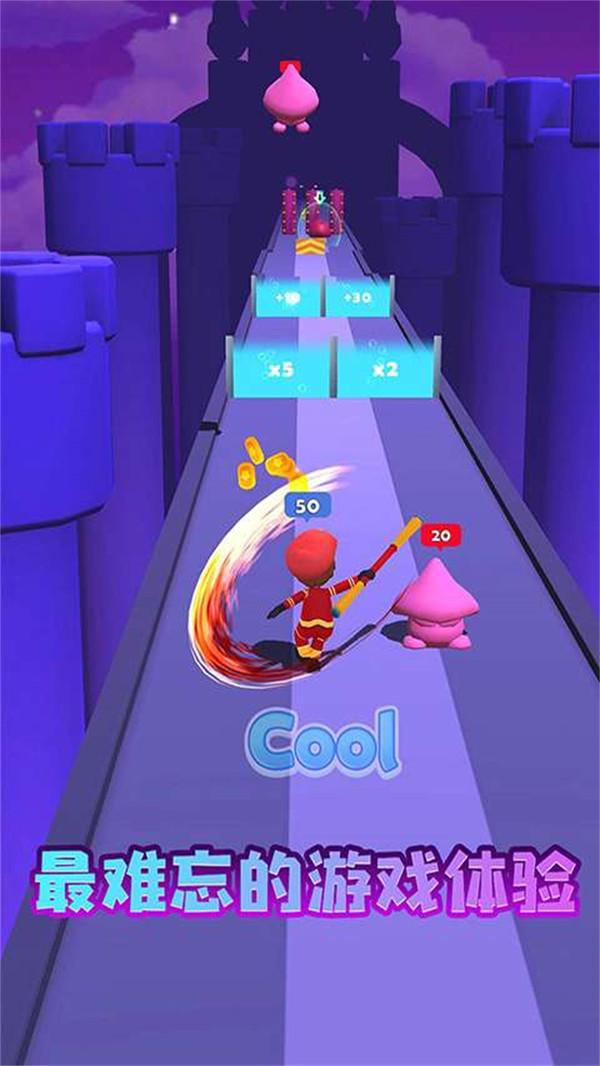 游戏的玩法非常的简单有趣,主要的特色在于游戏中拥有非常绚丽的武器打击的特效和超级丰富的关卡可以让玩家一直进行挑战,喜欢的玩家不要错过了。