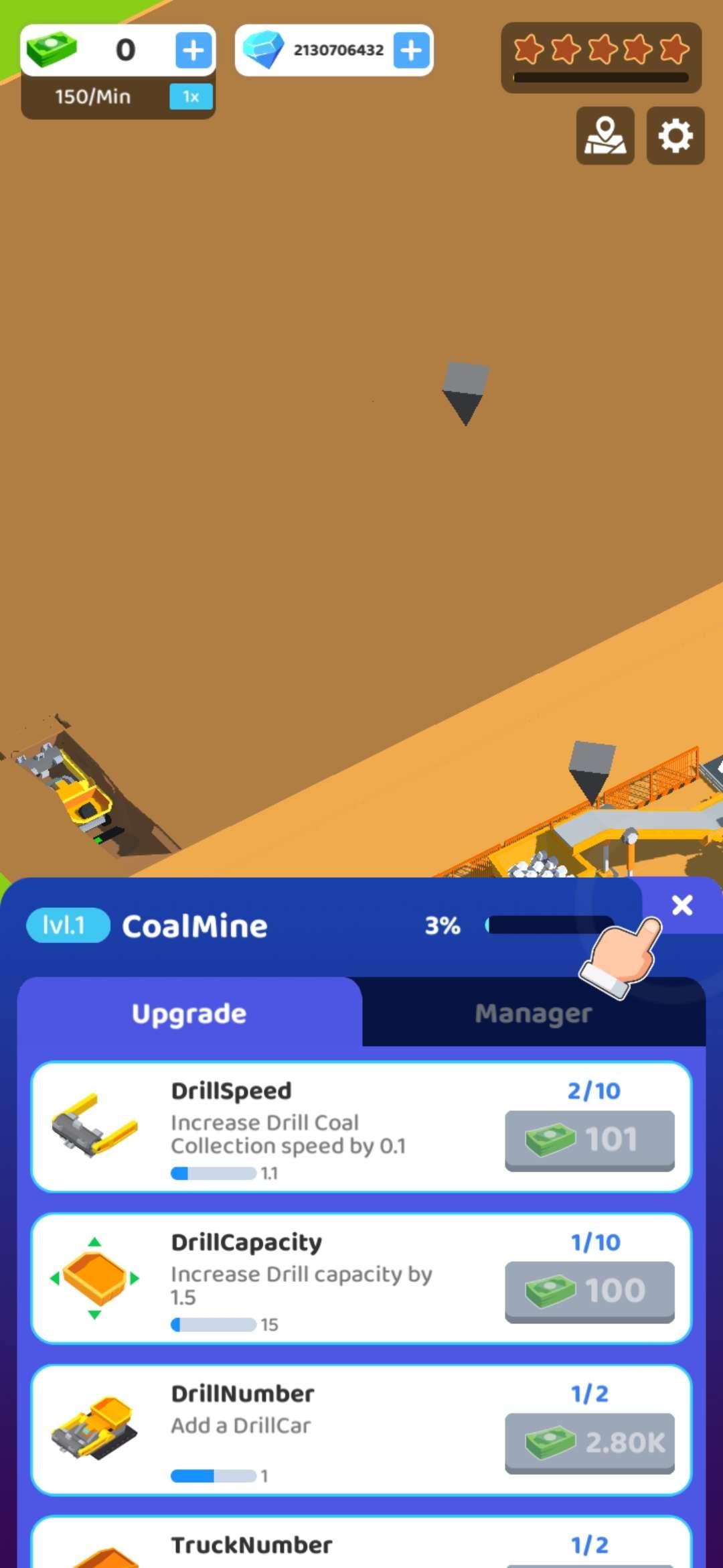 解锁新地图,解锁新采煤方法,获得巨额财富