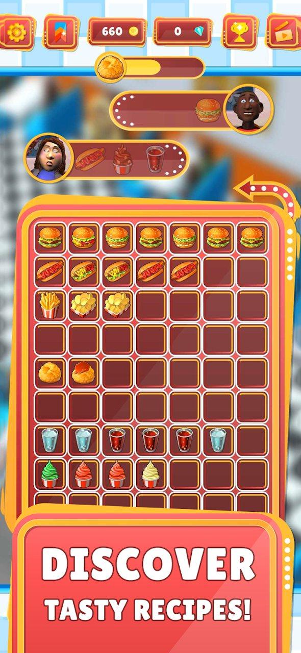 晚餐合并游戏给大家破解成使用货币不减反加,这是一款有趣好玩的合成游戏,将食物进行合成得到新的食物,满足顾客的需求,赚取金币来装修餐厅,操作非常简单,将两个相同食物拖放在一起即可,顾客的要求很多,正确的食物才能让顾客买单;
