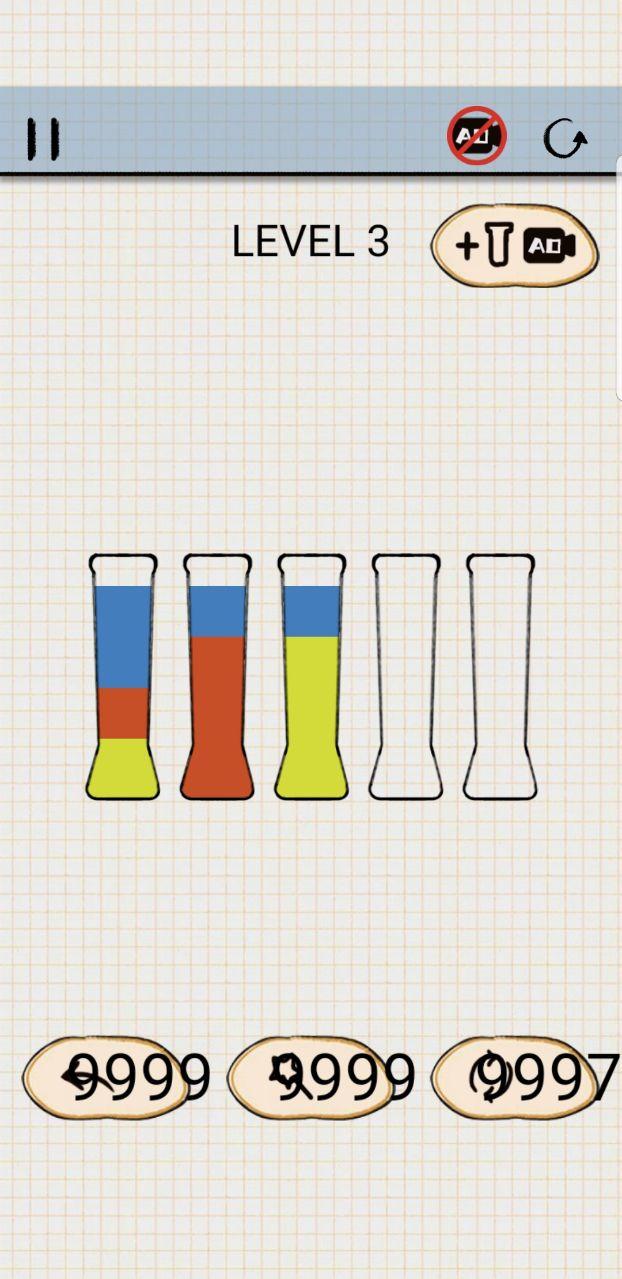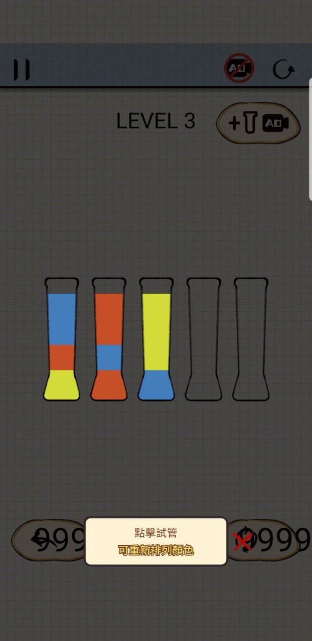 也可以选择增加分类道具,增加一个装有色水的管子。倒水的规则需要仔细研究,熟练运用。