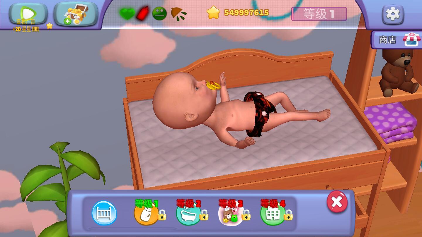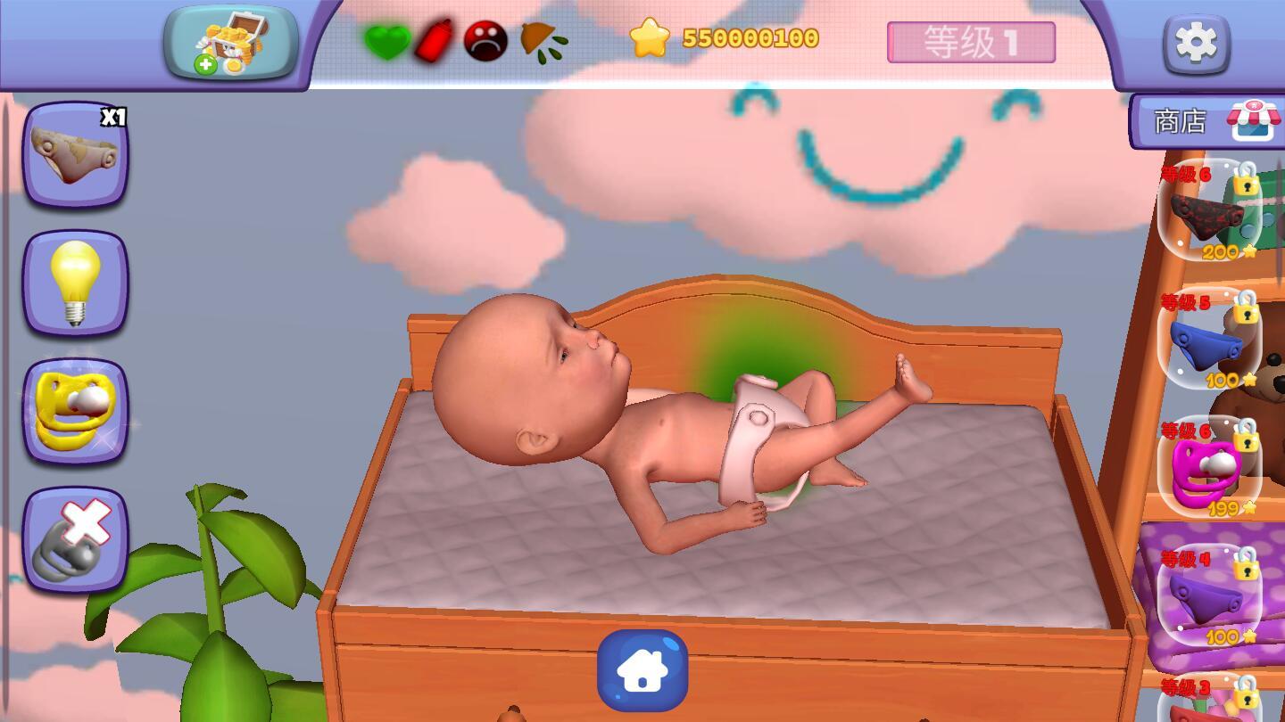 婴儿模拟器2游戏给大家修改成进入游戏获得大量的星星,这是一款模拟照顾婴儿的游戏,采用3D的设置,内容非常的真实,您需要给婴儿喂食,让小婴儿时刻处于健康幸福的状态,这样他才能健康成长,如果婴儿哭闹的话,那么可能是生病或者是饿了;