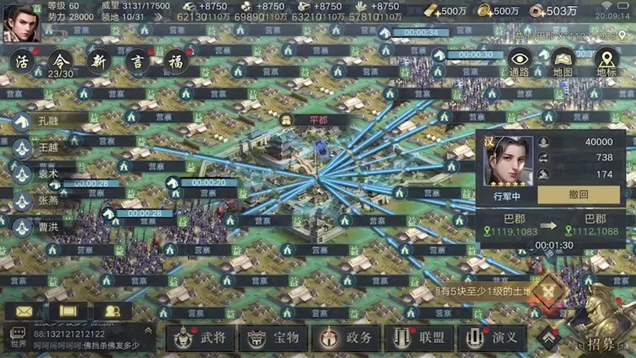 2.在历史的战斗中,加入真正的三国战争,打败敌人,不断壮大自己的国家。