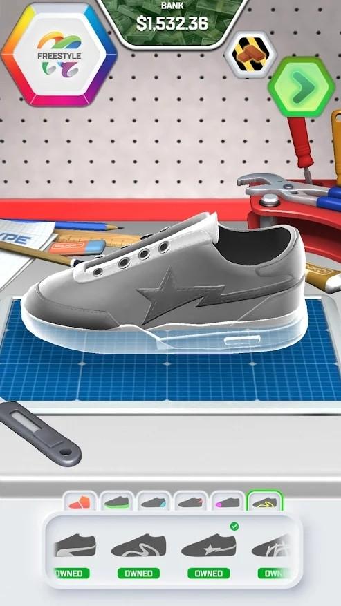1.解锁更多金币和道具,更好设计完美运动鞋;
