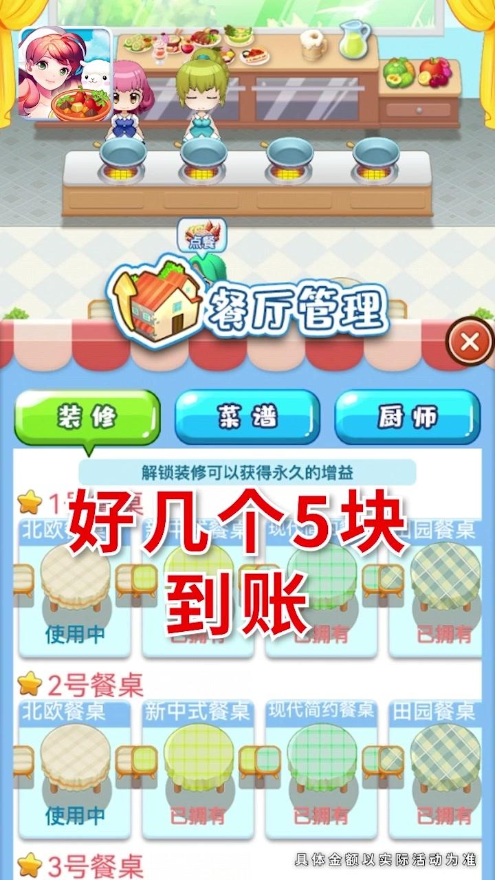 吉祥餐厅红包版就可以体验的经典红包养成手游,简单的操作将带来的全新玩法,玩家们可以去探索更多的经营过程,而且简单的玩法,即休闲又有趣,玩家们可以去自由的完成更多有趣的挑战过程,这游戏休闲解压还能赚钱,随时提现,不用太可惜了!