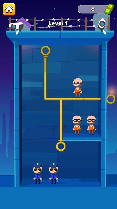 越狱Pin救援无限金钱版是一款休闲益智类的游戏,配合上可爱有趣的卡通画风,轻轻拉动拉针你就可以帮助犯人越狱了,当然嘴上说的容易,这么耐玩的游戏需要你开动大脑,制定好一个完美的策略才能帮助犯人成功越狱哦!可一定要小心警察。这么有趣的游戏,是不是开始心动了呢?快快行动起来吧!