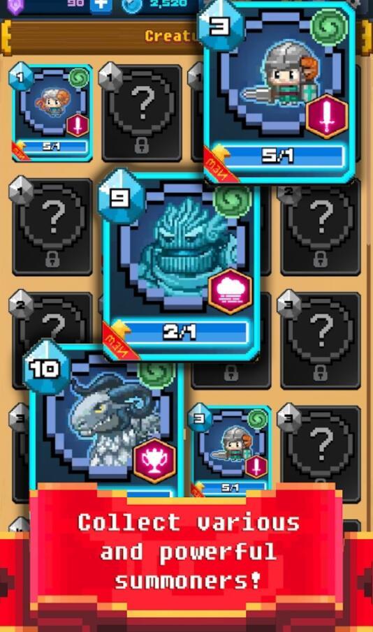 召唤师之战2048无限货币版是一款像素风格的休闲益智游戏,游戏的玩法非常简单,在延续合成玩法之上并且融入了经典的2048玩法,在游戏中玩家将化身为一名召唤师,通过不断地召唤来迎接更多的敌人,还可以融合相同的灵魂来升级,使之具有更强的战斗力。
