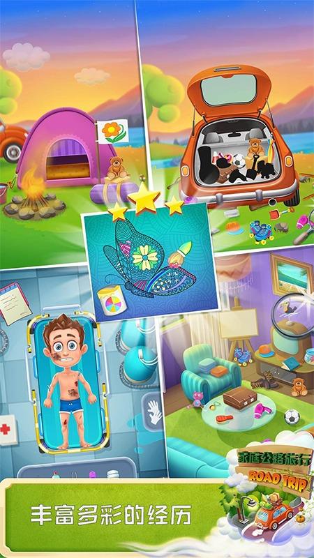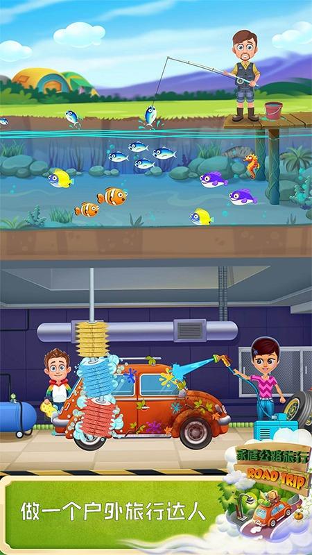 家庭公路旅行是一款亲子游戏,专门为儿童开发出来的,在这款游戏中,玩家能前往各个场景里面进行游玩,比如水边钓鱼,野外烧烤等,享受大自然的美好时光,游戏的画风非常的卡通,内容也很简单,可以让儿童在里面玩得非常的开心;