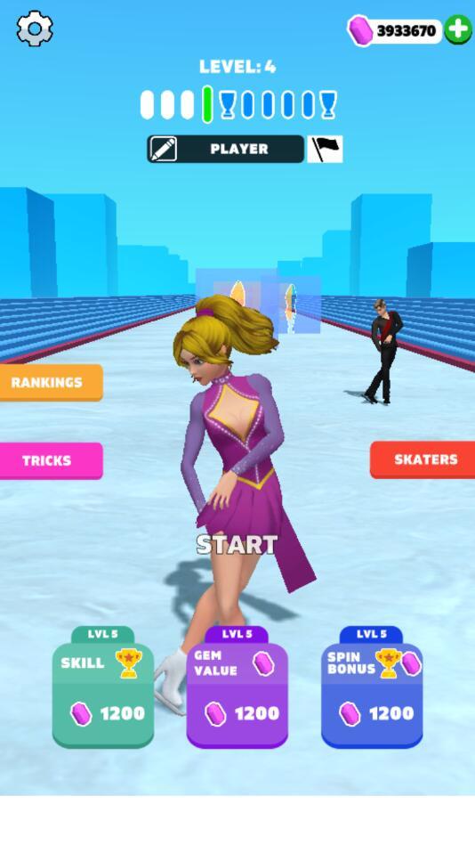 花式滑冰游戏给玩家们破解成了使用钻石升级可以得到大量的钻石,这是一款滑冰跑酷游戏,玩家需要与对手在冰上面进行表演比赛,做出各种滑冰的姿势来越过障碍,赢得胜利,先到达终点就能赢得胜利,获得很多的奖励;