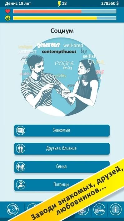 生活模拟器游戏给玩家破解成大量的金钱,这是一款很真实的模拟游戏,玩家将从出生开始扮演,您将体验人的一生,很多的选择会决定着您的未来,您可以选择在这个模拟游戏中认真工作,也能够建立自己的人际关系,想成为什么样的人都可以;