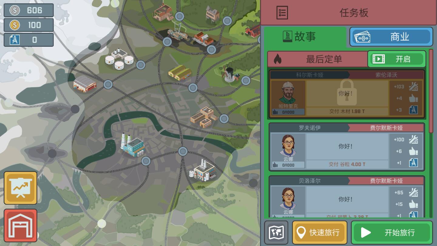 你需要接受各种运输佣金,将农产品、建筑材料和工业品从一个地区运输到另一个地区。