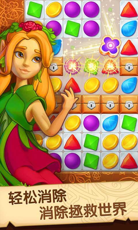 3.精致的画风。精致的画风带你走进神奇大陆的奇幻世界。精致的宝石元素,华丽的消除效果,颜控制器的最爱。