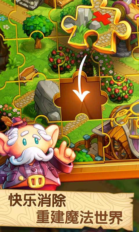 1.独特的玩法。通过经典的淘汰玩法,你可以得到一块块拼图,修复被摧毁的大陆。同时,你也可以收集物品,合成你喜欢的建筑。