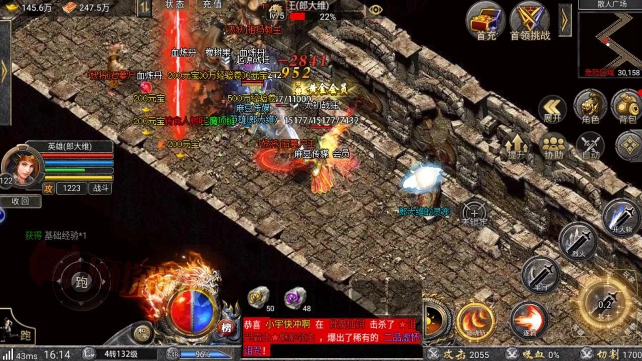 超高暴击体验一刀999的快感,野怪所有副本都可以一刀毙命,为你刷副本省时省力,轻松快速刷完所有副本。