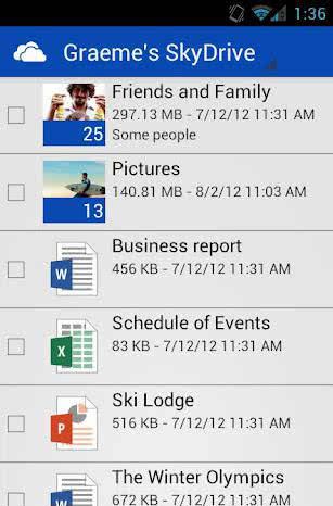 ? 在其他 Android 应用程序中开启 SkyDrive 档案。