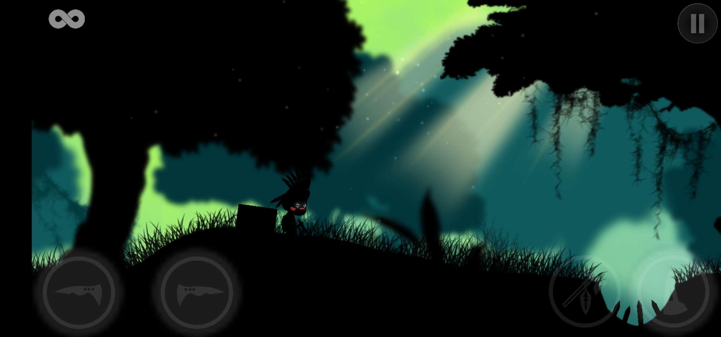 2.进入游戏时,玩家需要操作主角去冒险。在这个黑暗的丛林里,会有很多危险等着你去挑战。