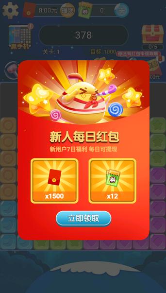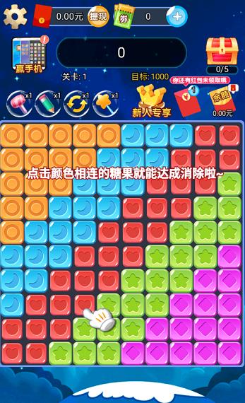 2、快乐的背景音效挥之不去,消除更多的图形,并有红包礼物在有限的时间里等着你