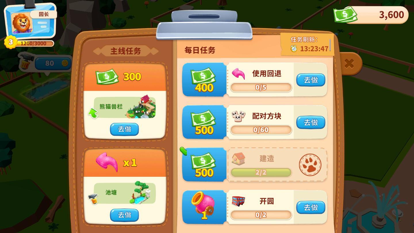 在动物园动物公园规划师中,每个关卡都有一个设定的目标和设定的时间,玩家需要在设定的时间内完成一系列的挑战。