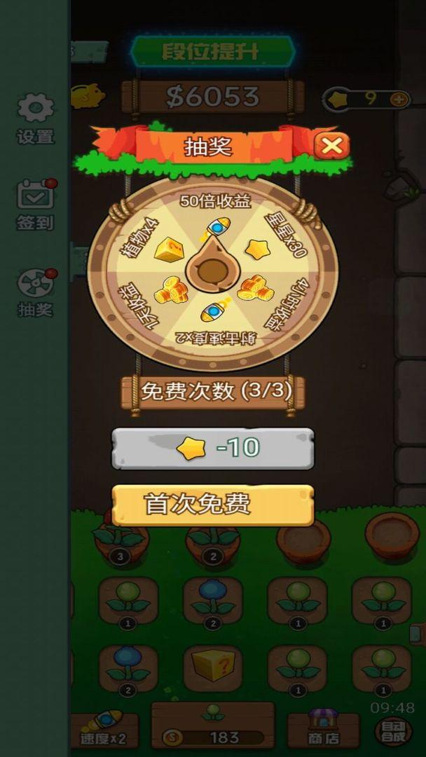商店大概25秒送一个植物,需要进商店领,等级为当前拥有的植物最高等级减4。(有时候是减5,也许是bug)由于2合1升级,大概8分钟不到可以解锁下一级植物。