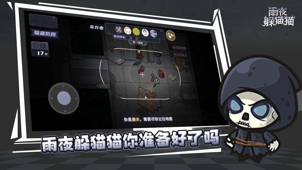 雨夜躲猫猫游戏是一款以躲猫猫为核心玩法的休闲小游戏,游戏采用暗黑的风格打造,简单而有趣,百玩而不腻。并且分为了两大阵营,屠夫和游客,在开始游戏后你将会被随机分配,并进行一场前所未有的躲猫猫比赛,快来试试吧!