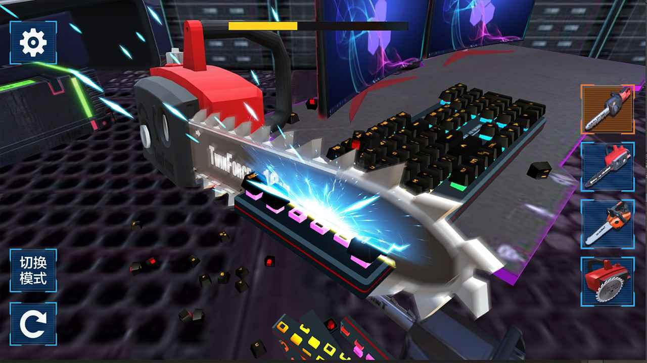 键盘破坏模拟器是一款非常解压的游戏,您是否在工作上有很大的压力和烦心事,那么就来玩这款游戏吧,将您的键盘一通乱砸、锯掉键盘、掰碎键盘等,让压力得到充分的释放,各种道具都能够用来破坏键盘,给人舒爽的感觉;