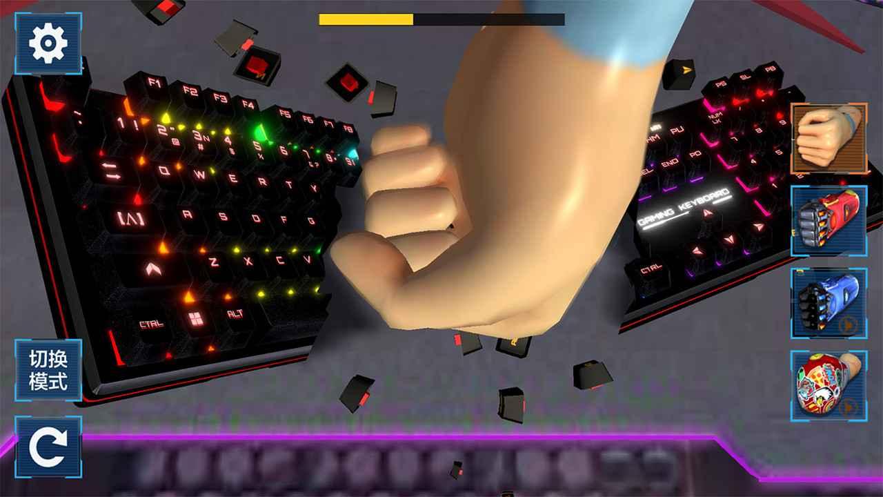 2、锤键盘:一怒之下锤爆键盘,怕疼?那就换上钢铁拳头吧。