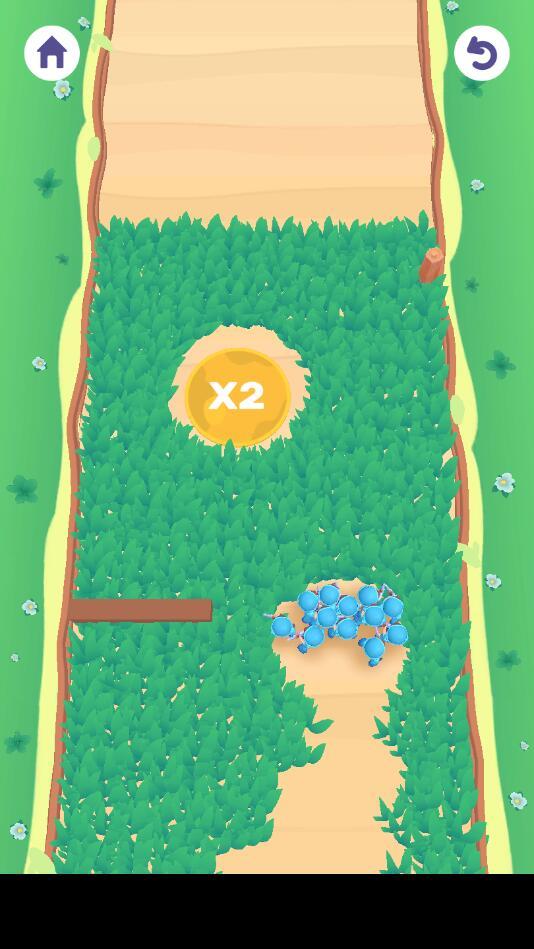 滑动屏幕,割掉阻挡自己军队的草,与敌军作战;