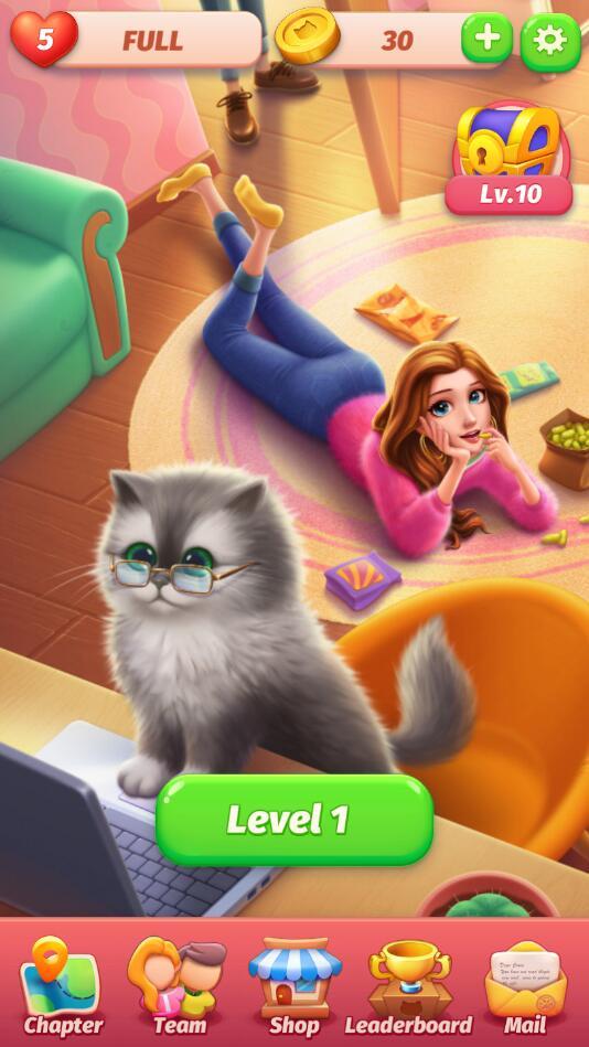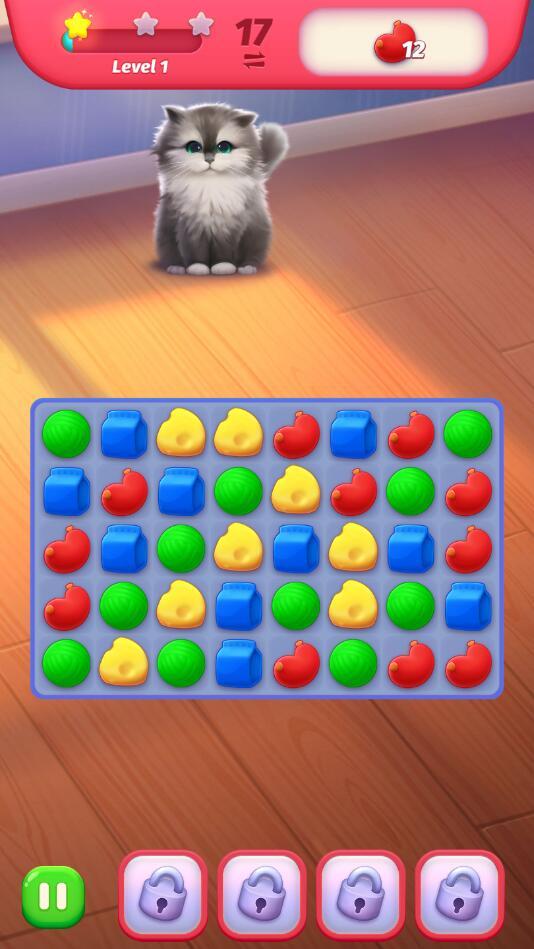 超级可爱的缅因小猫Chris,超高质量的三消爆炸效果,以及角色剧情丰富的动画表现!