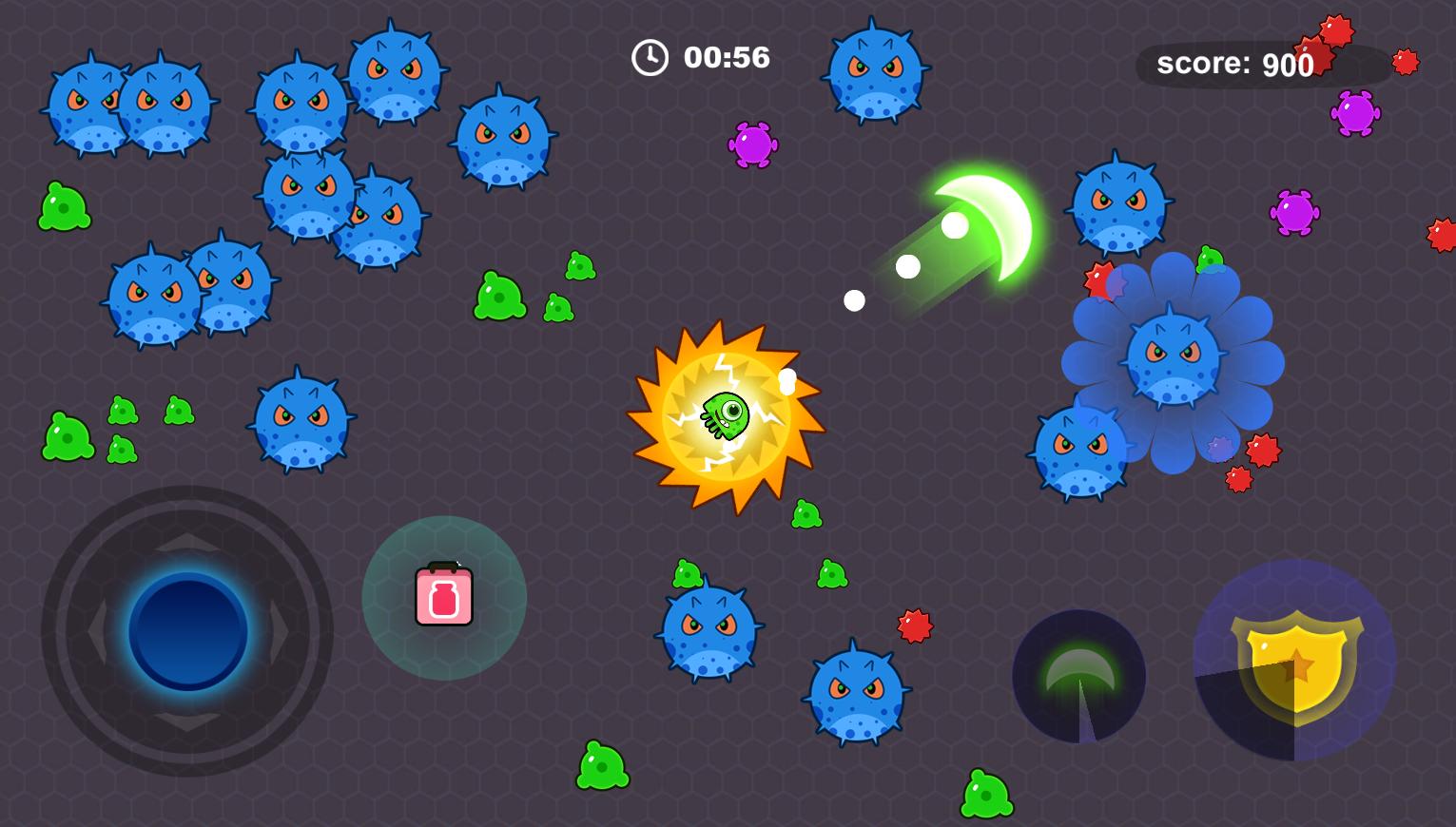 病毒分为:普通病毒、自我复制病毒(不停复制)、追踪病毒、爆炸病毒、各种boss病毒。病毒也会升级进化。