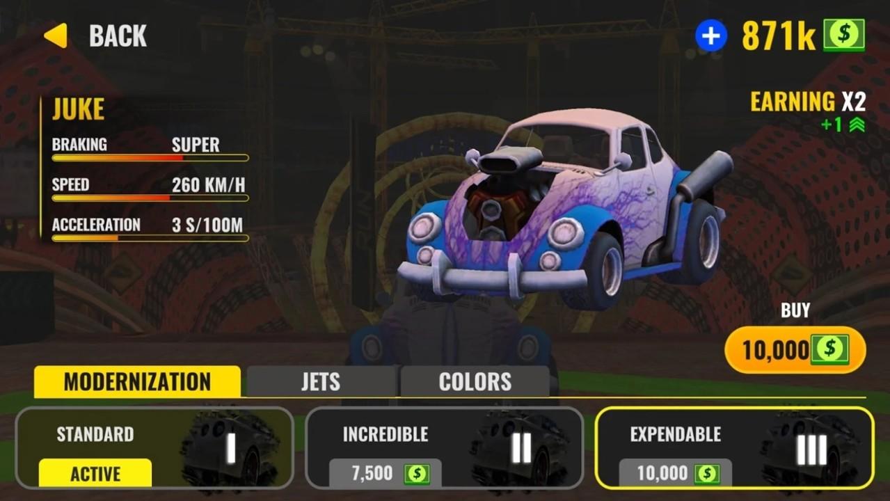 打开并升级你的汽车,按照你自己的口味来油漆它,在每一个新的挑战中变得更好,并在这里展示谁是真正的特技演员!