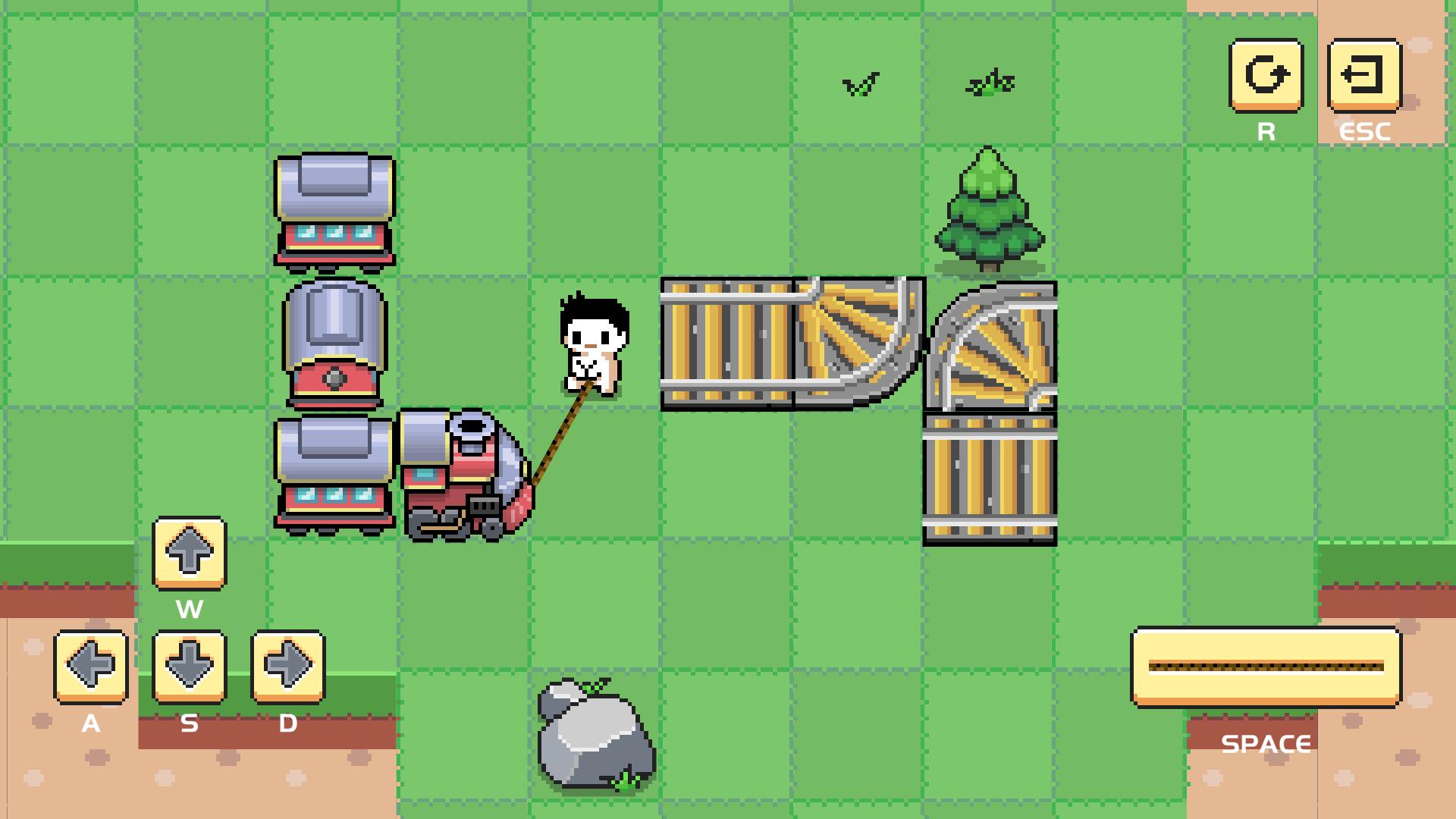 rerail手游是一款卡通像素风格的休闲手游,游戏的玩法也非常的简单,游戏中玩家将扮演一个超级大力士的卡通小人进行力量的挑战,你需要想办法用力气将火车都拉到轨道上就好了,4节车厢都在轨道上就算成功。