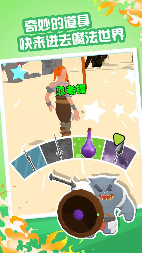 玩家会在游戏开始时从一种武器中选择另一种武器,然后在向敌人投掷武器时点击屏幕,可以增加武器数量,提高命中率。