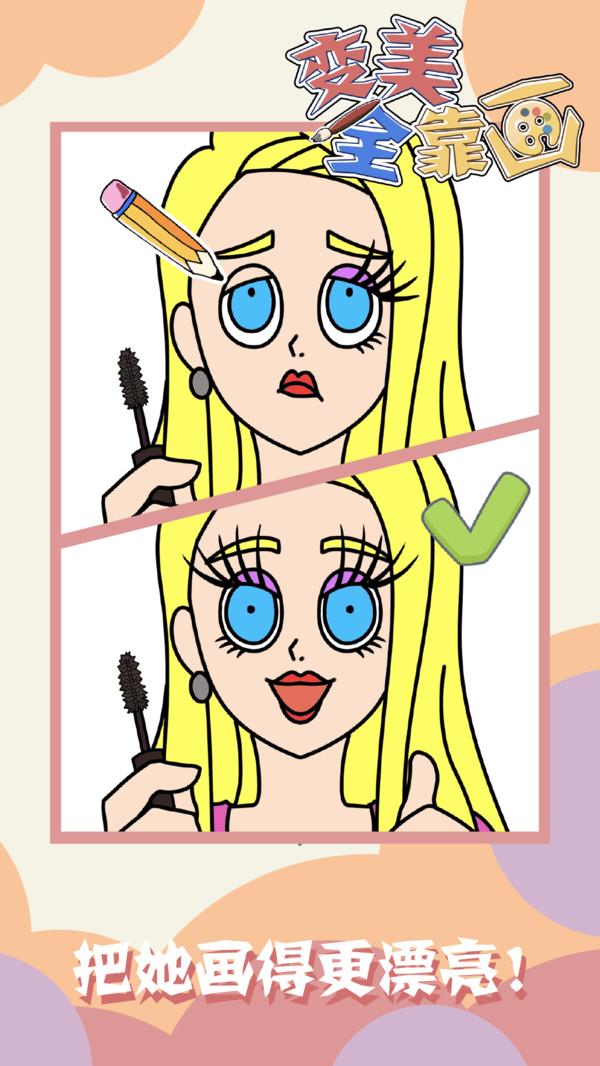 变美全靠画是一款很考验玩家脑洞的休闲游戏,玩起来非常的有趣简单,玩家只需要使用手中的画笔来把图片中缺失的部分补充起来,无需您的绘画功底很深,只要您有脑洞即可,关卡丰富,每一关都能给您带来不一样的感受;