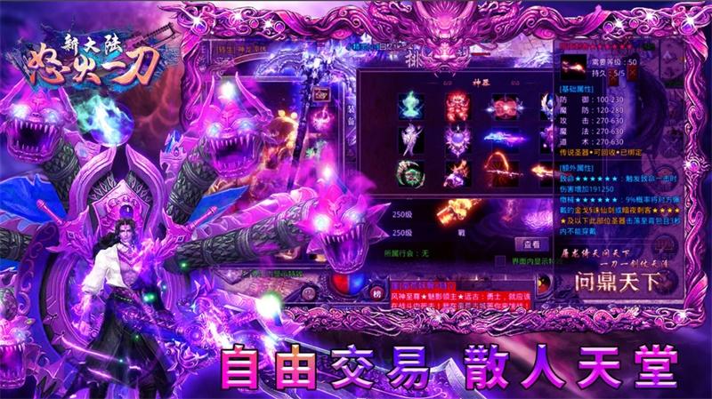 《怒火一刀新大陆》是一款正版授权的打金传奇手游,怒火一刀全新版本升级,在这里,你不仅可以体验到酣畅淋漓、热血硬核的PK系统,还可以通过市场倒货、自由买卖赚得盆满钵满。